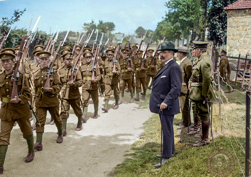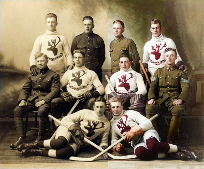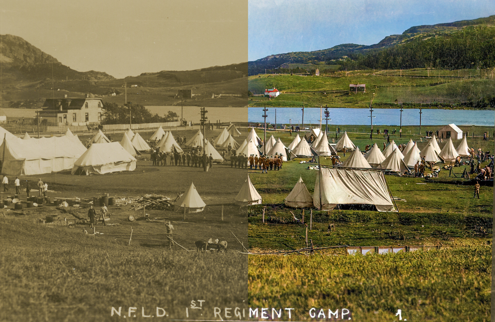 Before and after shot of the Royal Newfoundland Regiment at camp in St. John's, Newfoundland, in 1914.
